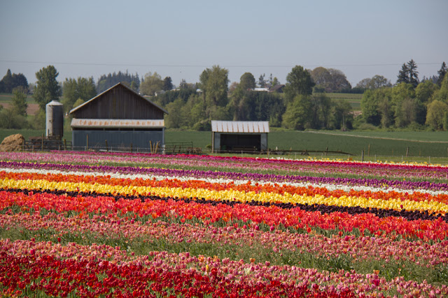 This morning was spent wandering through fields of flowers at the Wooden Shoe Tulip Festival (and later wandering through throngs of tourists straight off of their tour buses, yuck). I've always wanted to see the Dutch tulip fields but the only time I've ever been to the Netherlands it was in January so ne'er a tulip field did I see. This is likely the closest I'll ever get to fulfilling that dream.
